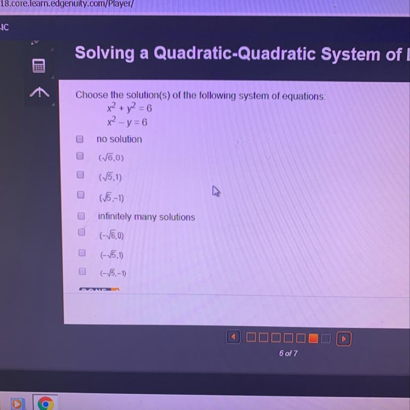 Choose the solutions of the following systems of equations x^2+y^2=6 and x^2-y=6