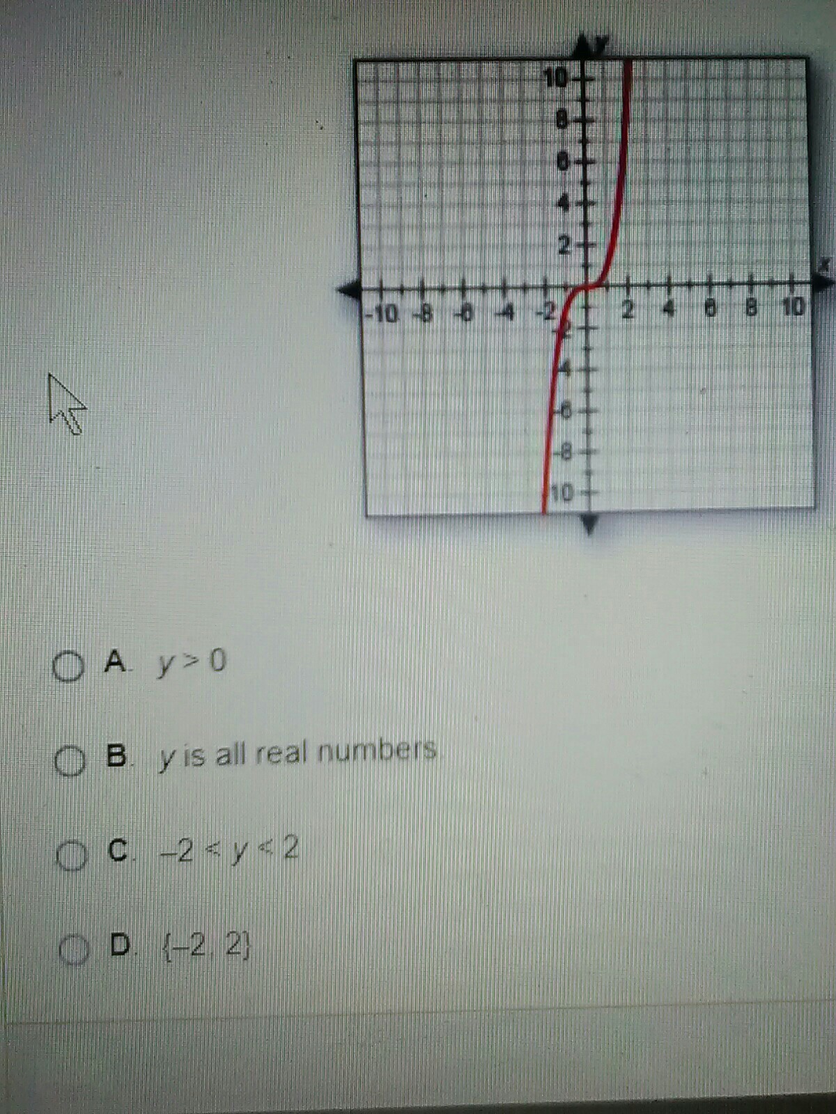 The choice is b because the graph on the right illustrates that the range, which comprises all possible y values, extends infinitely in both positive and negative directions.