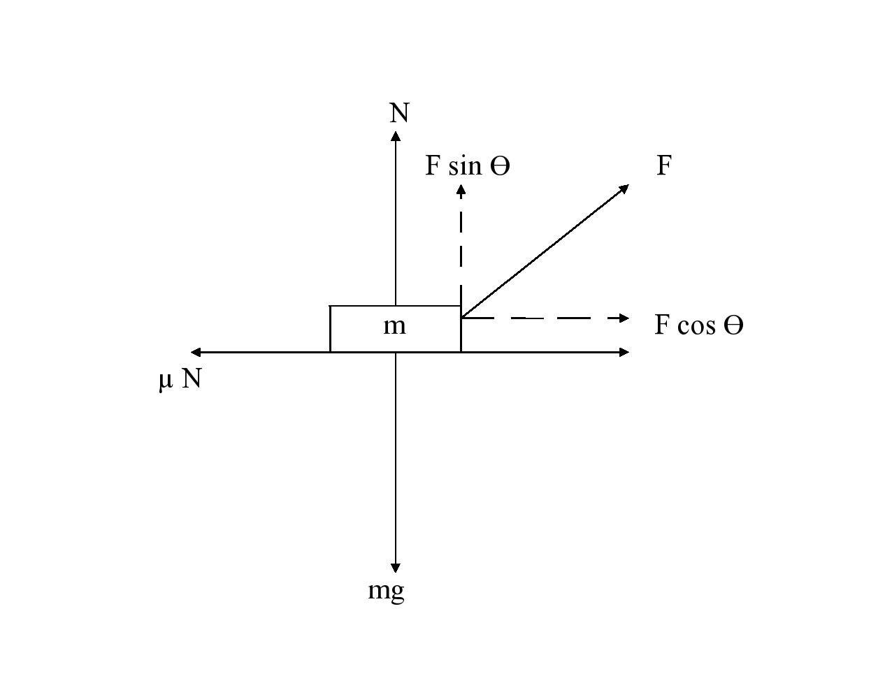 Also, the normal reaction (N) is calculated as mg - F sin θ