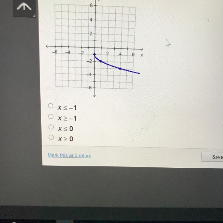 The graph indicates that x never goes below 0. This means the point (-1,0) is not included in the graph. Therefore, D is the only valid option.