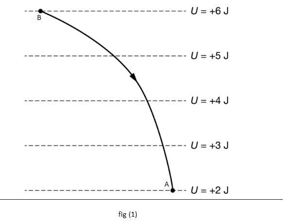 A particle is fired from point B with an initial speed and arrives at point A with U₀ joules of kinetic energy gained.