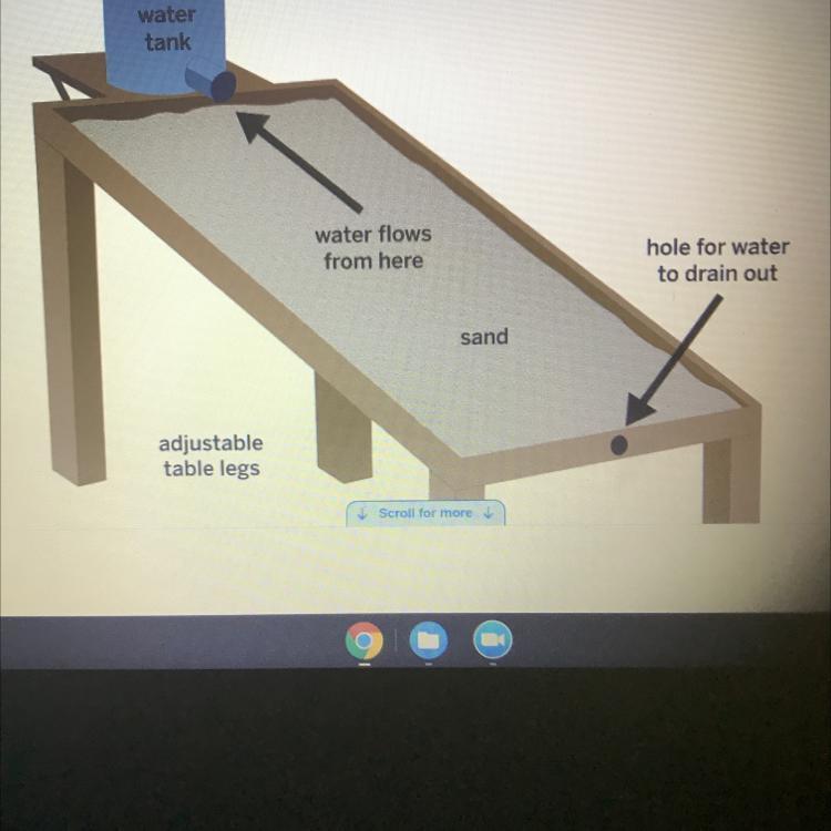 2. Sand table - this acts as the streambed. By modifying the size of the sand grains, students can examine the second hypothesis that smaller sand grains contribute to the river's narrowness and depth.
