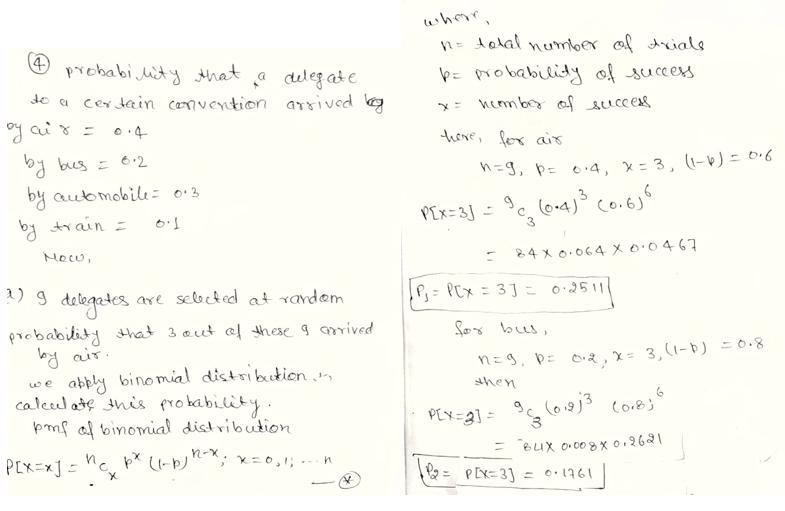 The probabilities are 0.4, 0.2, 0.3 and 0.1, respectively, that a delegate to a certain convention arrived by air, bus, automobi