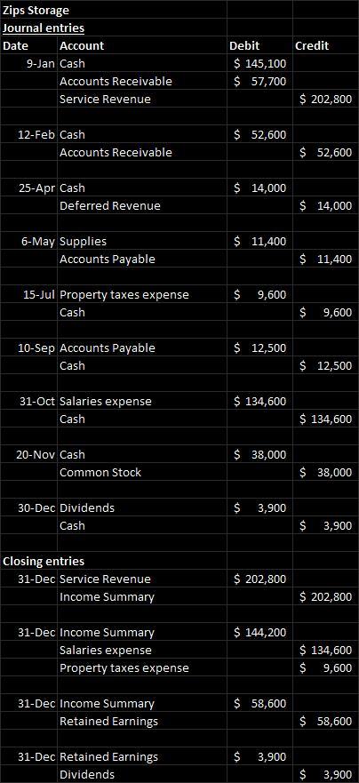 700 Accounts Receivable 16,500 Prepaid Insurance 14,200 Land 159,000 Accounts Payable $ 7,800 Deferred Revenue 6,900 Common Stock 154,000 Retained Earnings 46,700 Totals $ 215,400 $215,400 The following is a summary of the transactions for the year:1. January 9 Provide storage services for cash, $145,100, and on account, $57,700.2. February 12 Collect on accounts receivable, $52,600.3. April 25 Receive cash in advance from customers, $14,000.4. May 6 Purchase supplies on account, $11,400.5. July 15 Pay property taxes, $9,600.6. September 10 Pay on accounts payable, $12,500.7. October 31 Pay salaries, $134,600.8. November 20 Issue shares of common stock in exchange for $38,000 cash.9. December 30 Pay $3,900 cash dividends to stockholders.1. Prepare a post-closing trial balance. (Hint: The balance of Retained Earnings will be the amount shown in the balance sheet.)2. Prepare an unadjusted trial balance3. Prepare an adjusted trial balance4-a. Prepare the income statement for the year ended December 31, 2021.4-b. Prepare the classified balance sheet for the year ended December 31, 2021. (Amounts to be deducted should be indicated by a minus sign.)5. Record closing entries. (If no entry is required for a particular transaction/event, select "No Journal Entry Required" in the first account field.)6. Post the transactions, adjusting entries and closing entries to the T-accounts. Be sure to include beginning balances.
