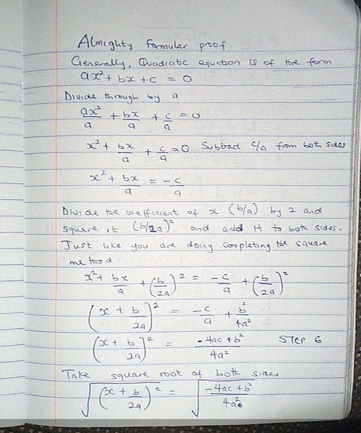 (b² — 4ac) / 4a² = (x + b/2a)²