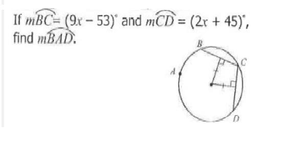 If mBC = (9x-53) and mCD = (2x + 45) find mBAD