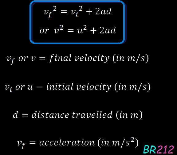 \boxed{ \ v^2 = u^2 + 2ad \ }
