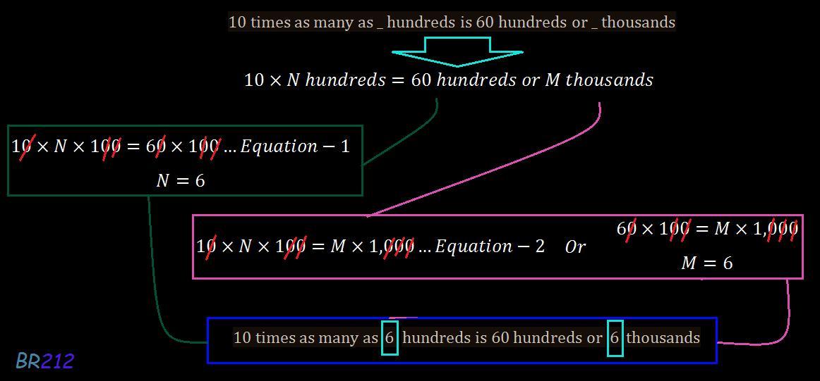 Keywords: 10 times as many as, blank, hundreds, 60 hundreds, or, thousands, isolate, operations, multiply, divide, fraction, both sides, equal, the opposite, both sides are multiplied by, divided by, rearrange