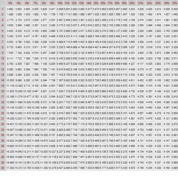 We can refer to the annuity factor table to find the closest value.
