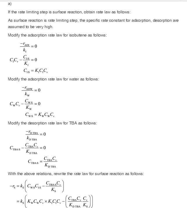 The reaction and corresponding rate law for isobutene adsorption on the Amberlyst-15 catalyst can be described by: