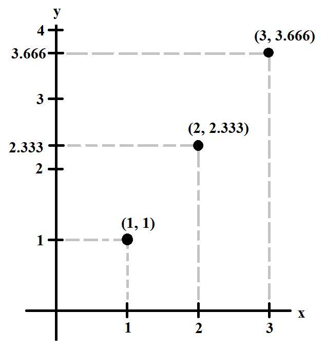 (1, 1), (2, 2.333) and (3, 3.666).