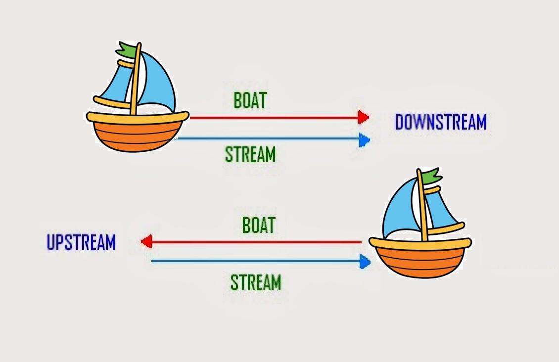 When proceeding upstream, the boat's speed counters the current's force.