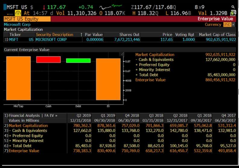 Here is the capital structure of Microsoft. What part of the $117.67 share price (to the nearest dollar) is represented by cash?