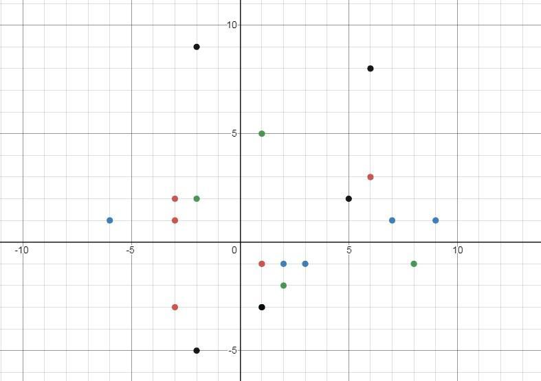 {(–3, 1), (6, 3), (–3, 2), (–3, –3), (1, –1)} -> Red points