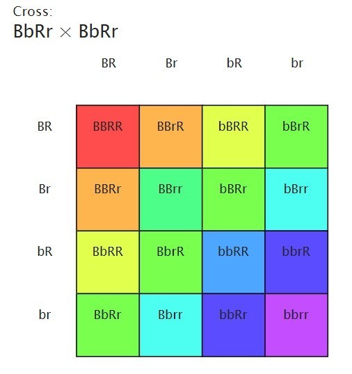 Essentially, you combine each possible allele pair from one parent (BR, Br, br, bR) with each pair from the other parent.