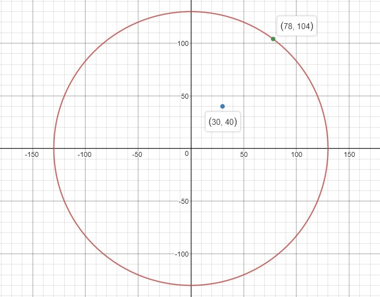 The distance "d" from the point to (30,40) can be calculated as,