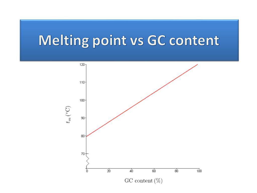Keywords: GC content, DNA structure, melting point, hydrogen bonds, adenine, thymine, guanine, cytosine, denaturation