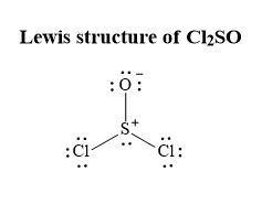 Sulfur forms one double bond with an oxygen atom and two single bonds with chlorine atoms. From the total of 26 electrons, eight are used in creating one S-O double bond plus two S-Cl single bonds, leaving 18 electrons remaining. Each chlorine atom retains three lone pairs, the oxygen atom holds two lone pairs, and sulfur has one lone pair.