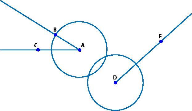 Answer: Identify the intersection point of circle D and line DE