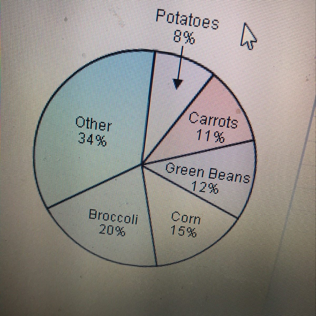 Corn and green beans account for 15% and 12%, respectively.
