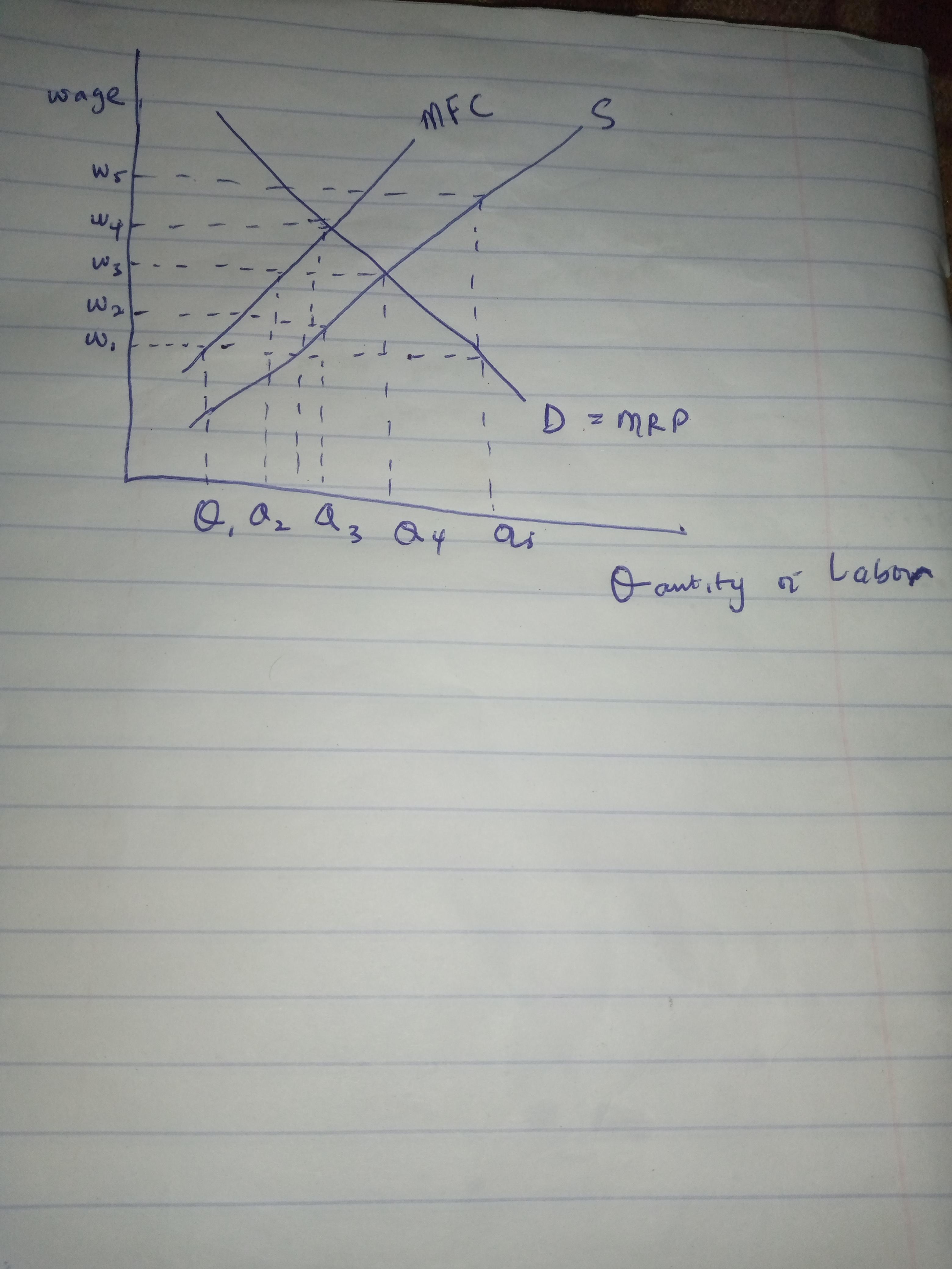 (ii). The remuneration rate that Larry’s Lumber Mill offers is found at the intersection where marginal revenue equals marginal cost, represented as W3.