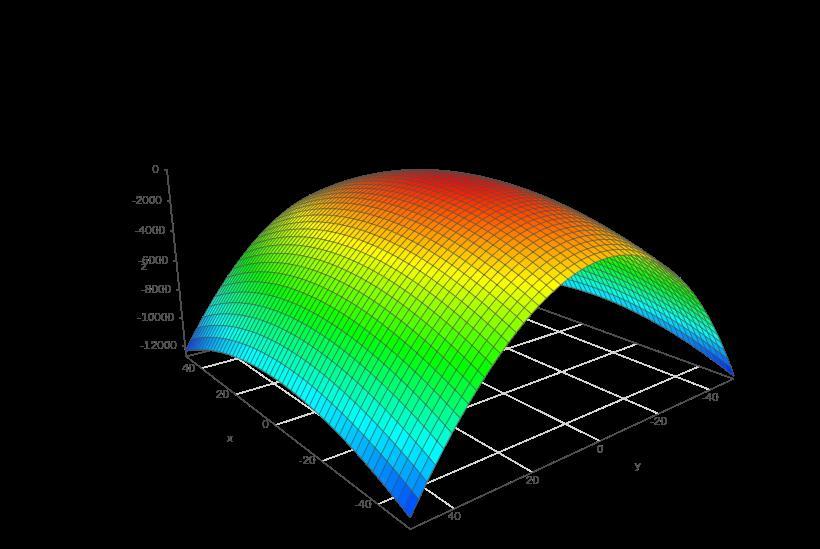 The function in question is f(x,y) = 9 - 2x + 4y - x^2 - 4y^2