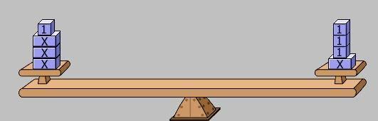 Hence, the method needed to balance the scale is to take away one x block from the left and three numbered blocks from the right.