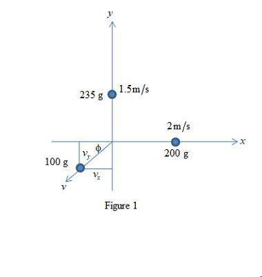 Plate, momentum, falls, collision, slide, impact, 200 g, 2 m/s, 235 g, 1.50 m/s, 100 g, direction, motion, horizontal, force, x-axis, y-axis, vertically, floor, breaks, three, pieces.