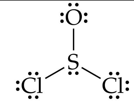 For thionyl chloride, sulfur serves as the central atom, and the overall valence electron count is: