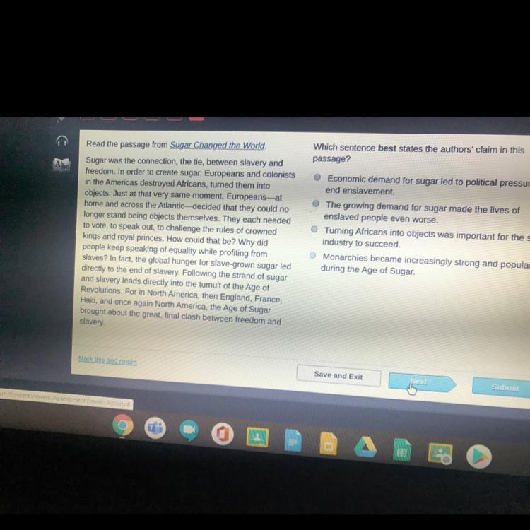 Which sentence best states the authors claim in this person passage from sugar changed the world