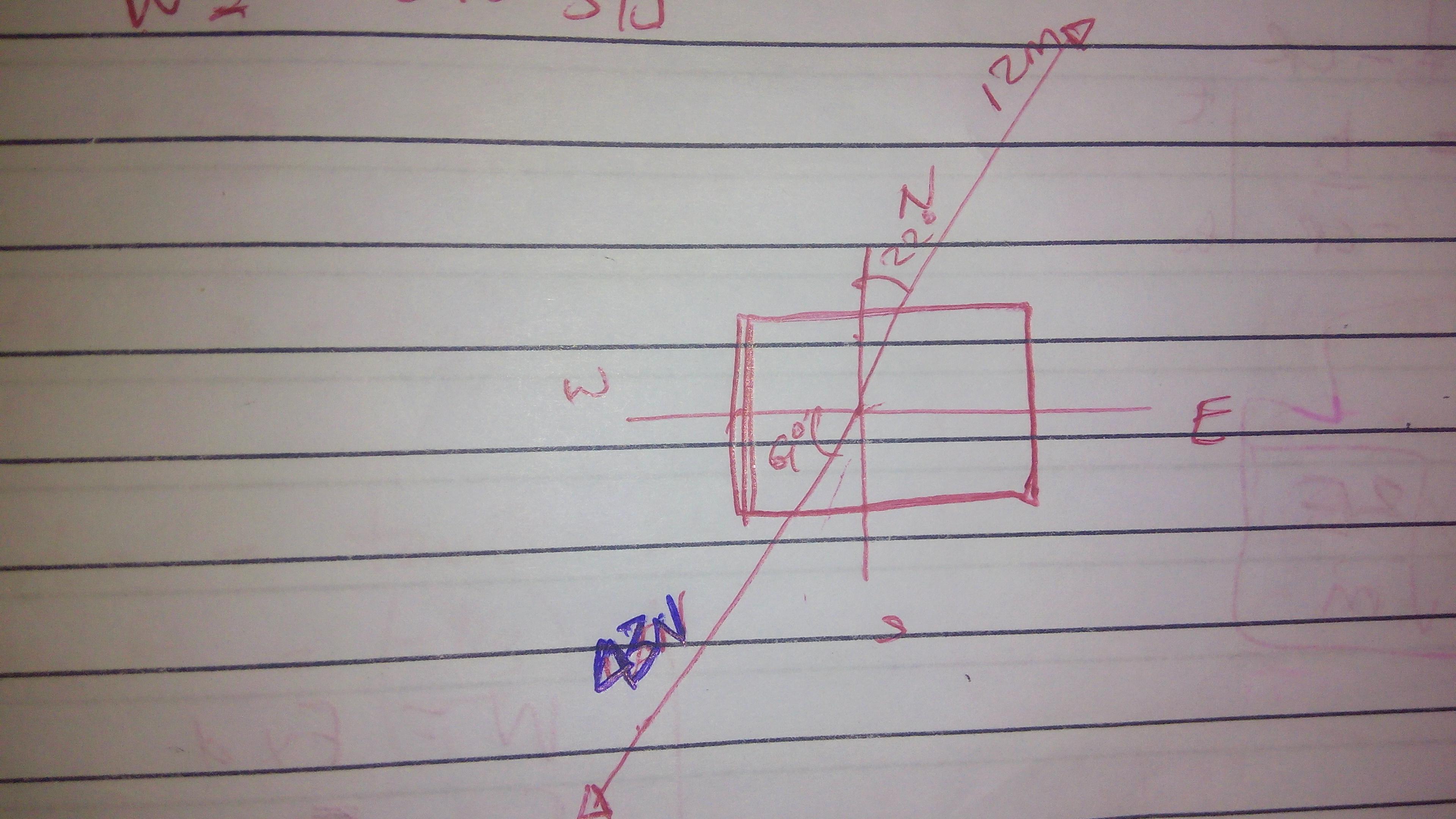 Displacement = 12 m, 22° NE