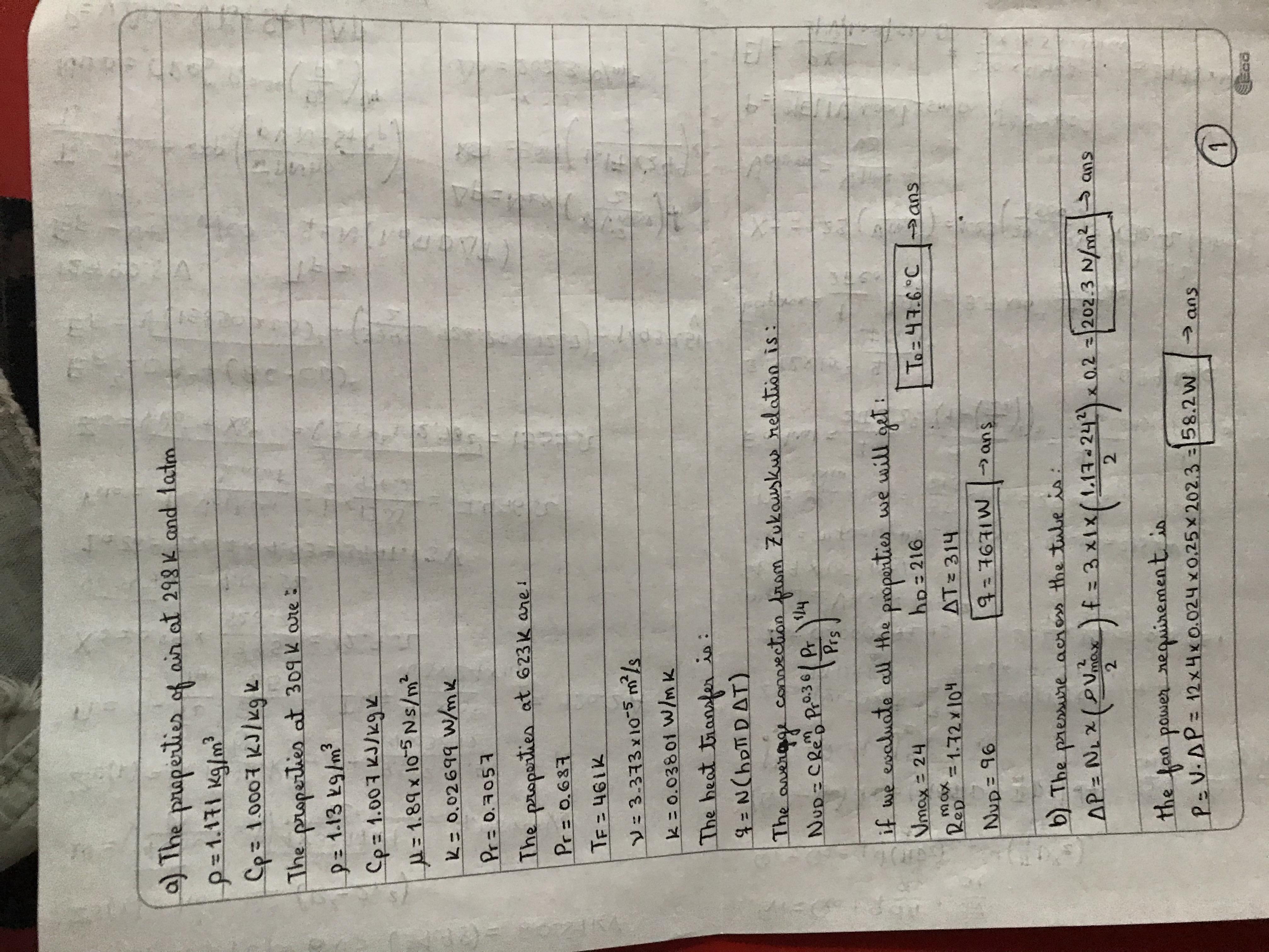(B) Determine the pressure drop across the element bank and the fan power requirement.