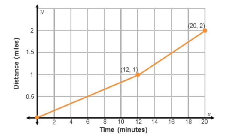 On the graph, the x-axis denotes time in minutes, while the y-axis shows distance in miles.