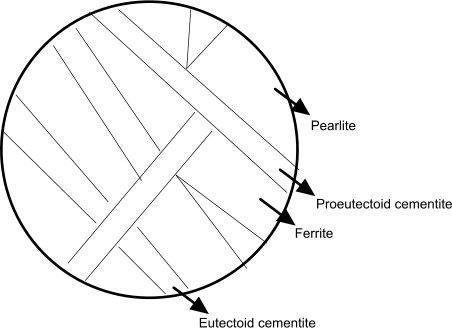 d) The diagram illustrates the different compositions: (pearlite, proeutectoid cementite, ferrite, eutectoid cementite)