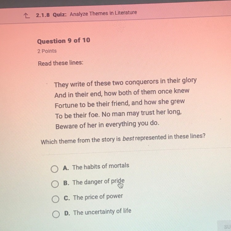 The correct response is B. it portrays Hannah's character development