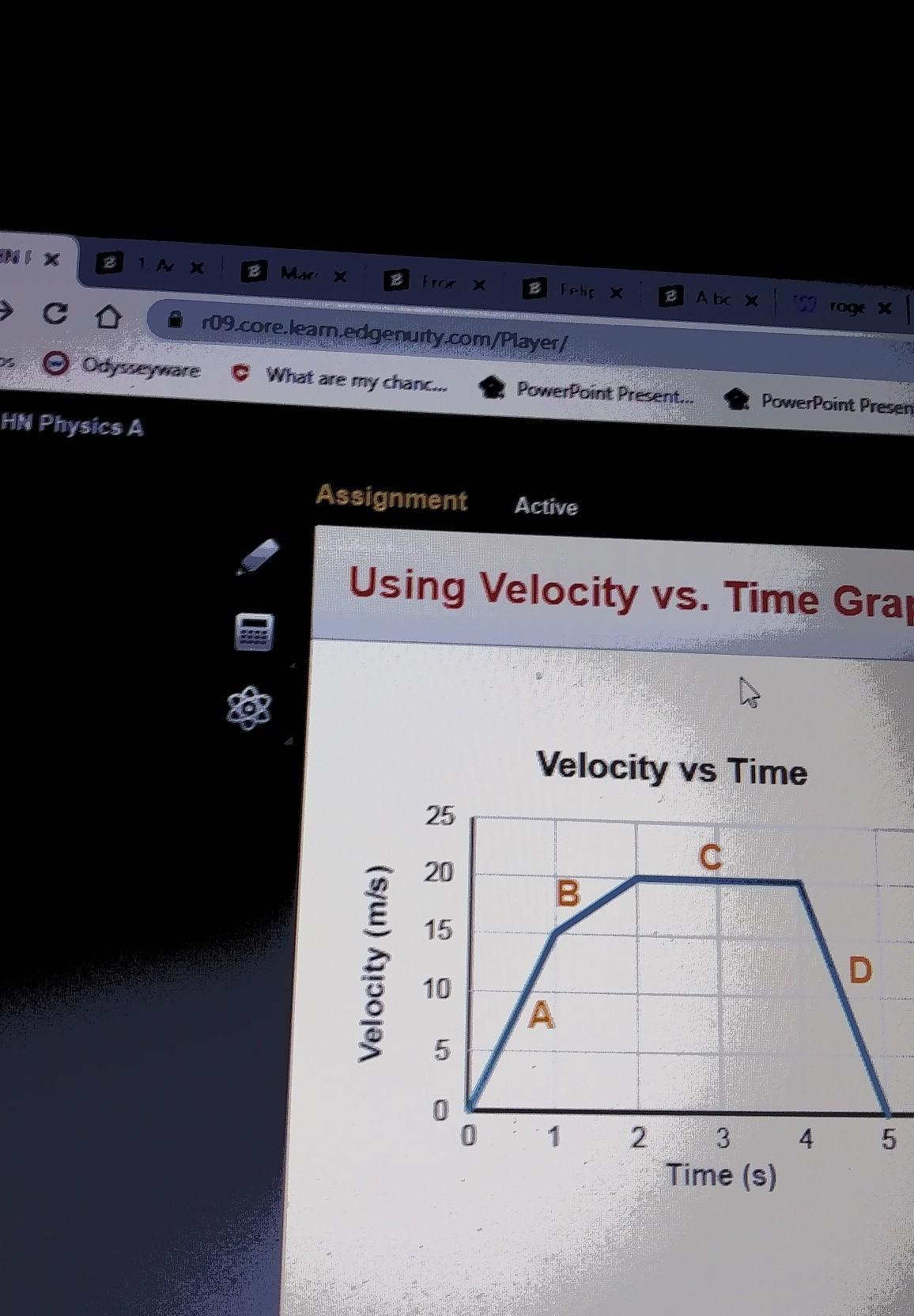 The acceleration of segment D is m/s2. Rank segments A, B , C from least accelerations to greatest acceleration. Least