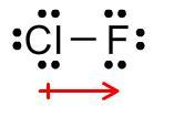 Thus, the arrow indicates that the bond between chlorine and fluorine is polar. The shared electrons in this bond are attracted more strongly by the fluorine atom, while the chlorine atom carries a slightly positive charge.