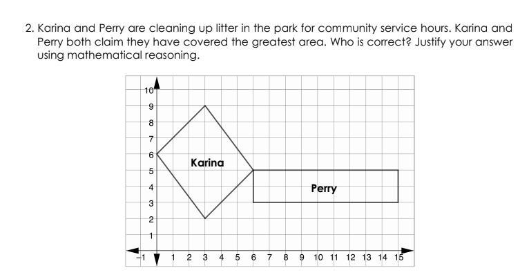 Consequently, since the rectangle covers a larger area, it is Perry who has accomplished more in her community service
