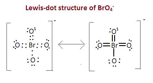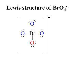 Keywords: Lewis structure, valence electrons, BrO4-, formal charge, 0, Br, oxygen, double bonds, single bond, bonding electrons, non-bonding electrons, total valence electrons.