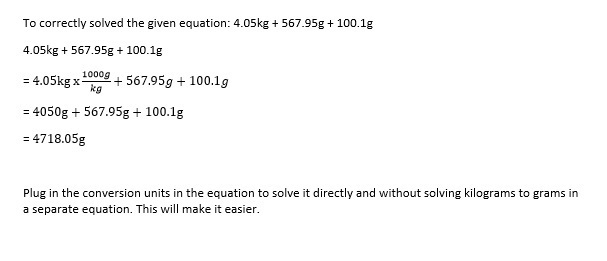 How to correctly solve this problem : 4.05Kg+567.95g+100.1g correct and best way