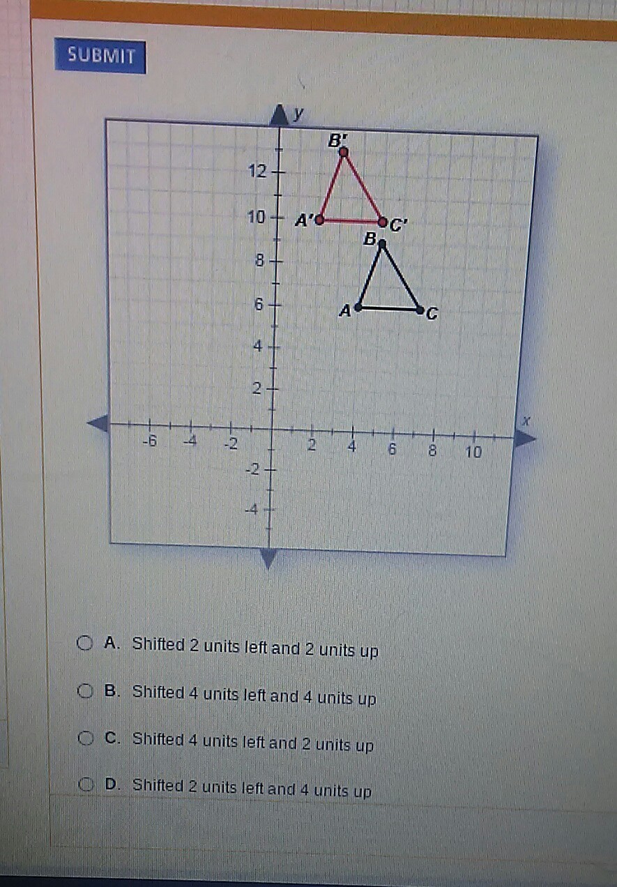 Moved 2 units to the left and 4 units upwards