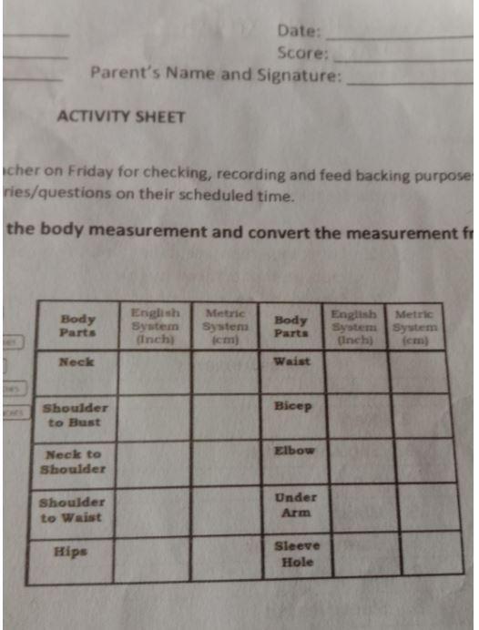 Body Measurements Imperial System (Inches) Metric System (cm)