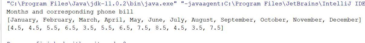 System.out.println("Months and corresponding phone bill");