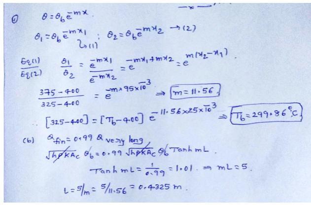 (b) Find the rod's length (mm) when the ratio of heat transfer from a finite length fin to that of a very long fin, under equivalent circumstances, is 99 percent.  = 0.4325m