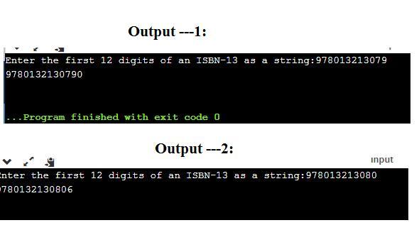 n=input("Enter the first 12 digits of an ISBN-13 as a string:")#this defines isbn as the input variable