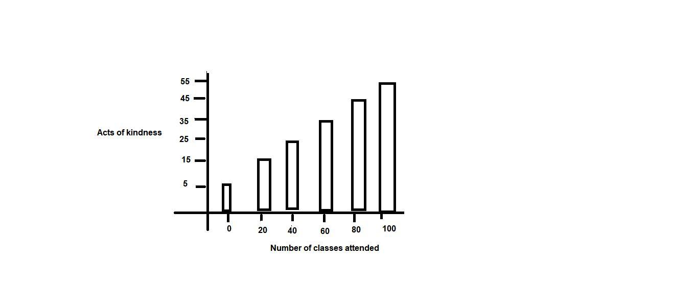 Hello. The graphics related to this question were not included, making it impossible to address your inquiry. However, I've created a model chart that illustrates the situation described in the question and is attached below. In the chart, it becomes apparent that as more students attend character education classes, their acts of foolishness increase. Conversely, these actions appear to decline as students participate less in these classes, achieving a very low level for those who have not attended any.
