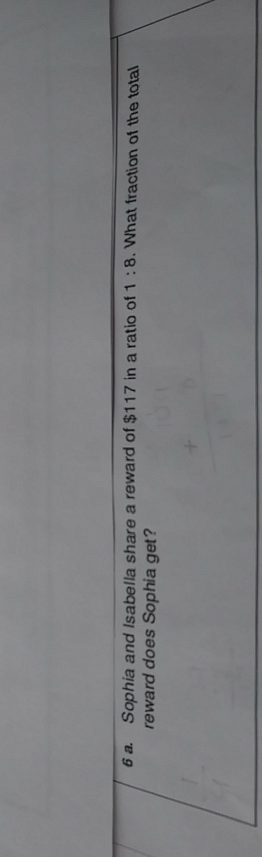 Sophia Isabella share reward of $117 in a ratio of 1 to 8 what fraction of the total reward does Sophia get