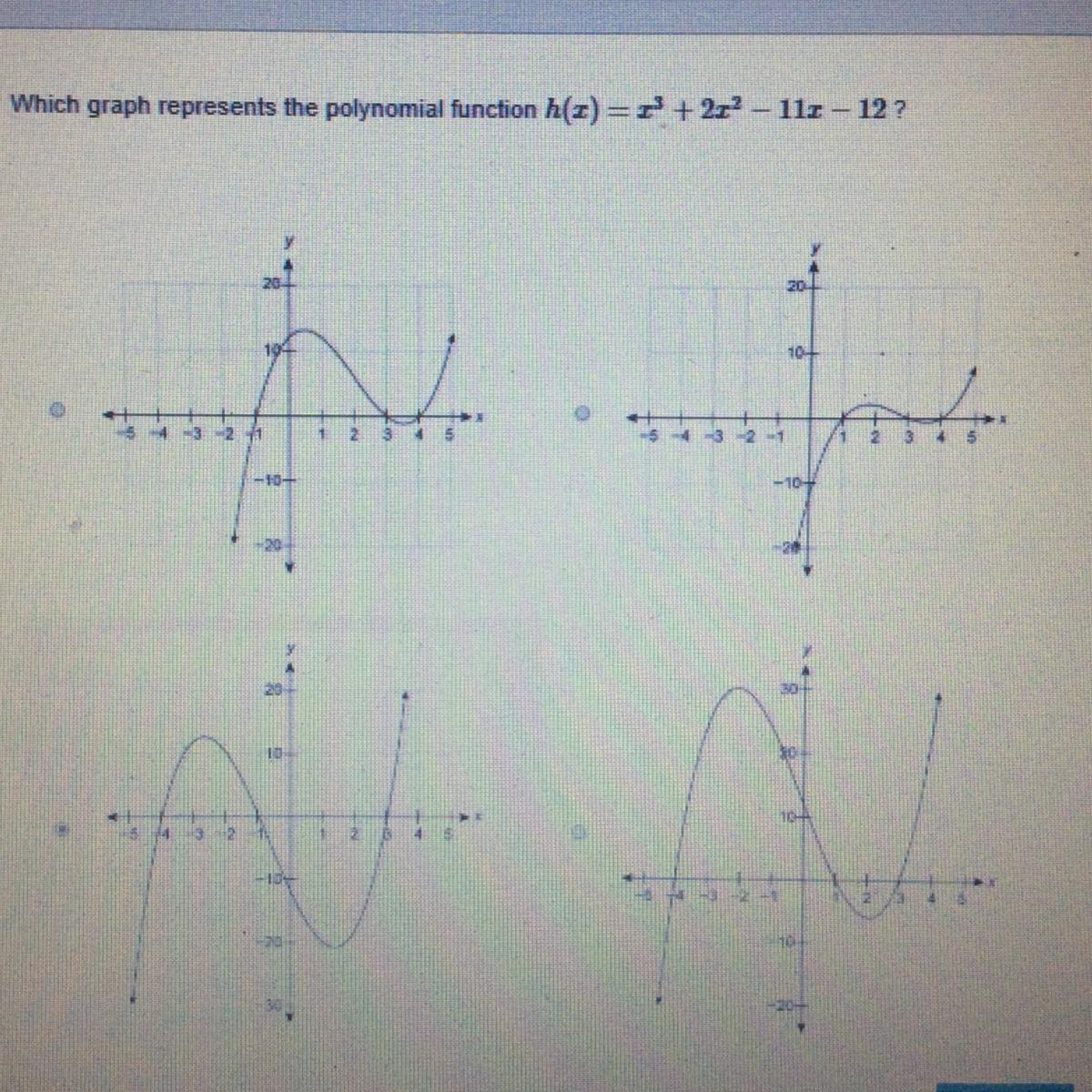 The function yields 0, confirming that this graph represents h(x) = x^3 + 2x^2 - 11x - 12