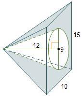 A cone is cut out of the center of a pyramid with a rectangular base. The rectangular base has side lengths of 15 and 10 units.