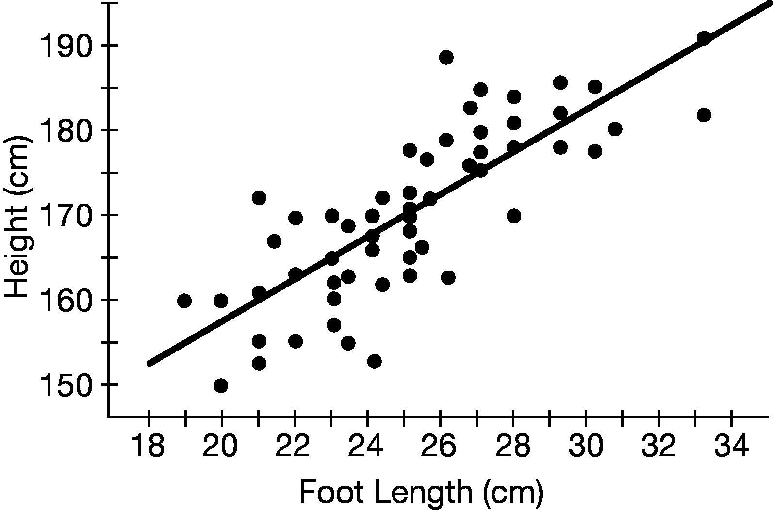 terplot shows the height, in centimeters (cm), and the foot length, in cm, for each high school senior from the sample. The least-squares regression line is shown. The computer output from the least-squares regression analysis is also shown. (a) Calculate and interpret the residual for the high school senior with a foot length of 20cm and a height of 160cm .